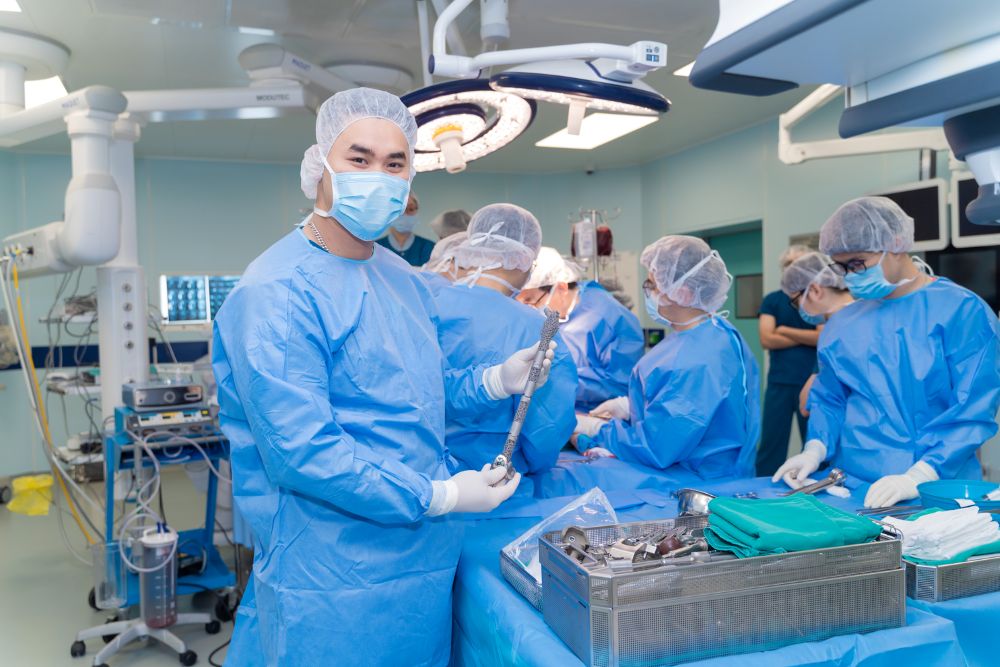 Ca mổ kéo dài nhiều giờ. Các bác sĩ vừa phải xử lý khối u xâm lấn, vừa bảo tồn tối đa phần mô lành, đồng thời tái tạo chính xác cấu trúc xương đùi để đảm bảo bé có thể đi lại bình thường sau này. Chỉ một sai lệch nhỏ cũng có thể khiến toàn bộ nỗ lực thất bại.
