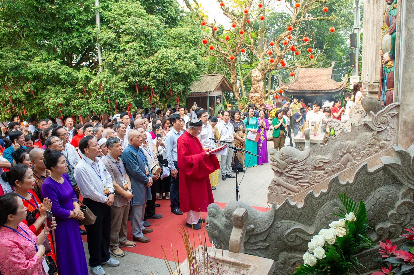 Chủ tịch Hội Di sản Văn hóa Việt Nam, PGS.TS Đỗ Văn Trụ, đọc Chúc văn tưởng nhớ tổ tiên, tri ân công đức các Vua Hùng, các bậc tiền nhân đã có công dựng nước và giữ nước.