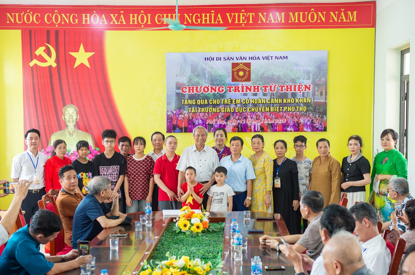 Cũng trong dịp này, Đoàn Hội Di sản Văn hóa Việt Nam đã đến thăm và trao quà Trường giáo dục chuyên biệt Phú Thọ, nơi có học sinh là những em nhỏ thiệt thòi, có em mồ côi, có em khuyết tật, chậm phát triển, có em tuy còn cha mẹ nhưng nghèo khó, bệnh tật, với mong muốn góp phần động viên các cháu cố gắng nỗ lực vươn lên trong cuộc sống, hòa nhập cộng đồng.
