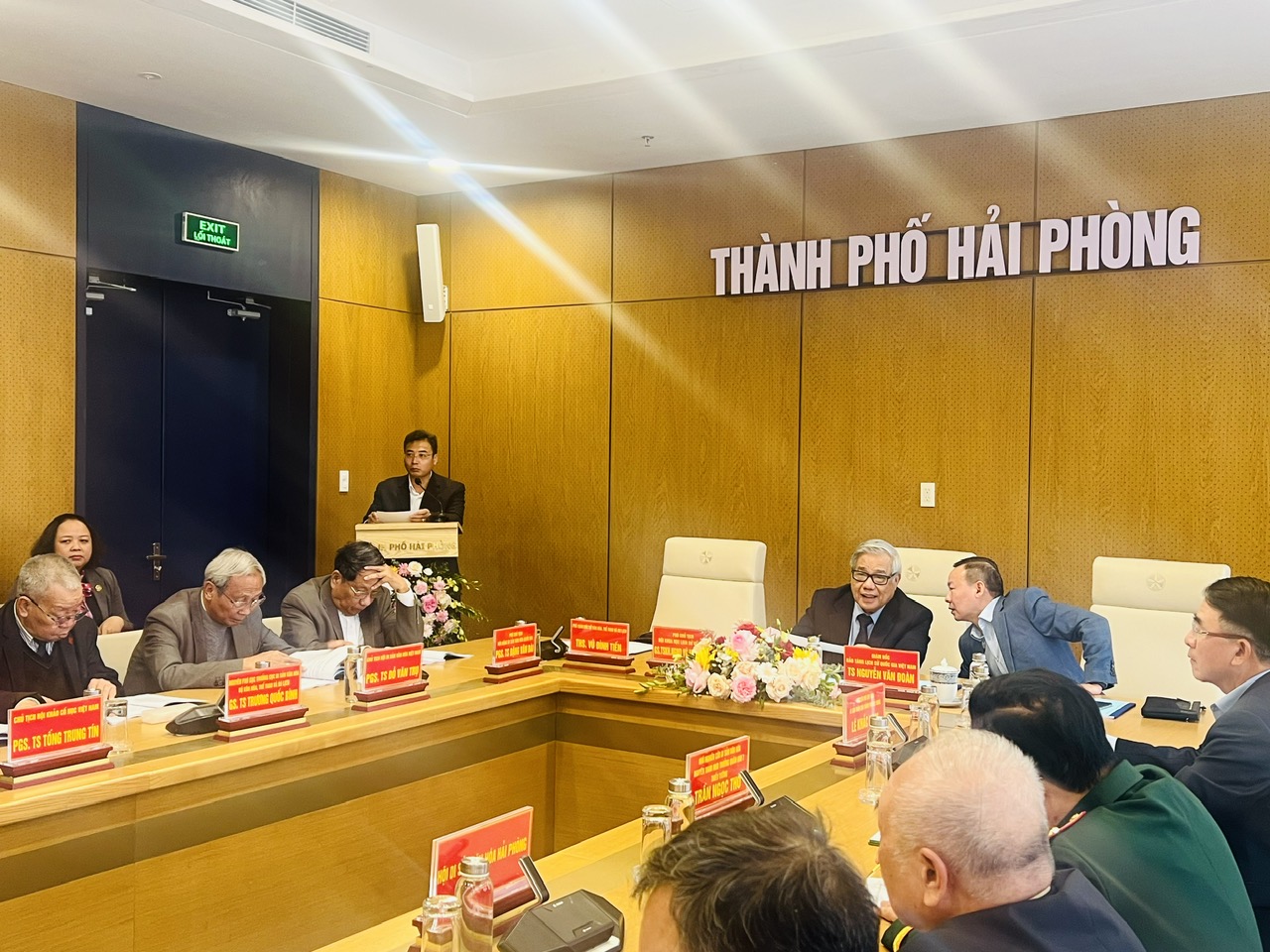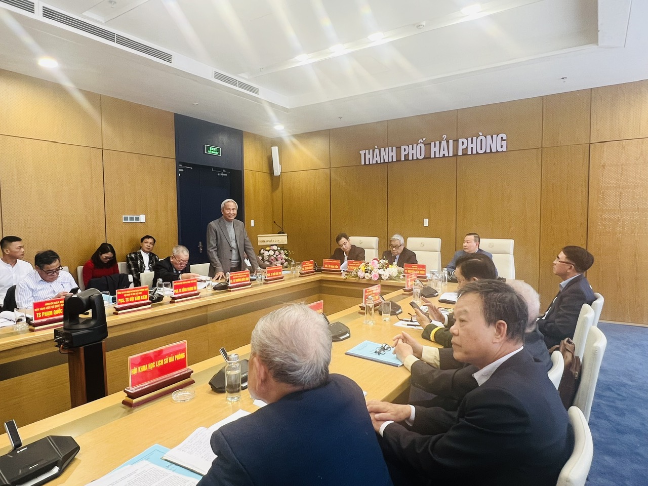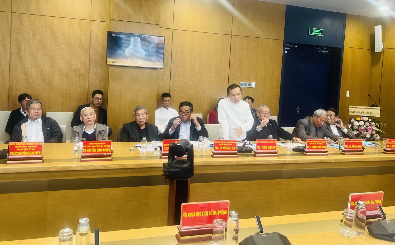 GS.TSKH Vũ Minh Giang, Phó Chủ tịch Hội Khoa học lịch sử Việt Nam; TS Nguyễn Văn Đoàn, Giám đốc Bảo tàng Lịch sử Quốc gia Việt Nam; ông Vũ Đình Tiến, Phó Giám đốc Sở Văn hóa, Thể thao và Du lịch Hải Phòng chủ trì hội thảo.