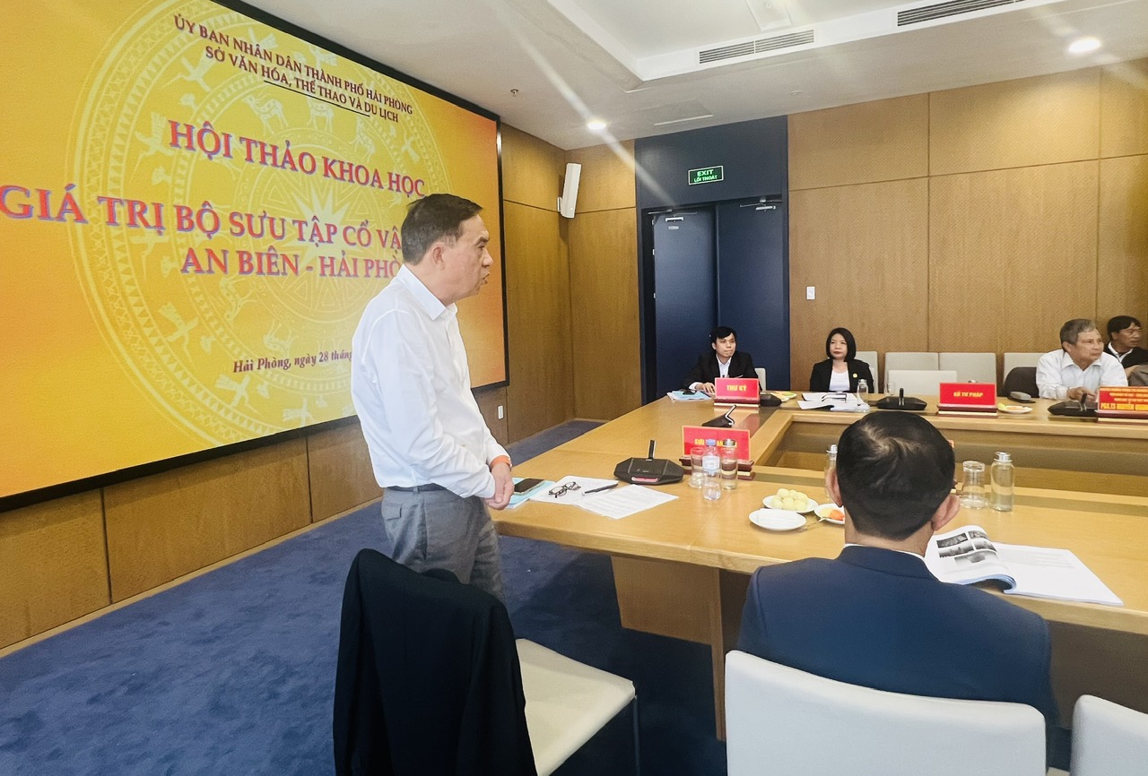 Phát biểu khai mạc hội thảo, đại diện lãnh đạo Sở VHTTDL Hải Phòng cho biết, ở Hải Phòng hiện nay có doanh nhân Trần Đình Thăng đang sở hữu bộ sưu tập cổ vật đồ sộ về số lượng, phong phú về loại hình, đặc biệt có đến 18 cổ vật đã được Thủ tướng Chính phủ công nhận Bảo vật quốc gia. Hội thảo được tổ chức nhằm tiếp tục nhận diện sâu sắc, khoa học và đầy đủ hơn về giá trị của bộ sưu tập cổ vật tư nhân An Biên. Từ đó cung cấp những luận cứ khoa học để tham mưu cho thành phố đề ra chủ trương, nhiệm vụ và giải pháp phát huy giá trị di sản văn hoá trong thời gian tới.