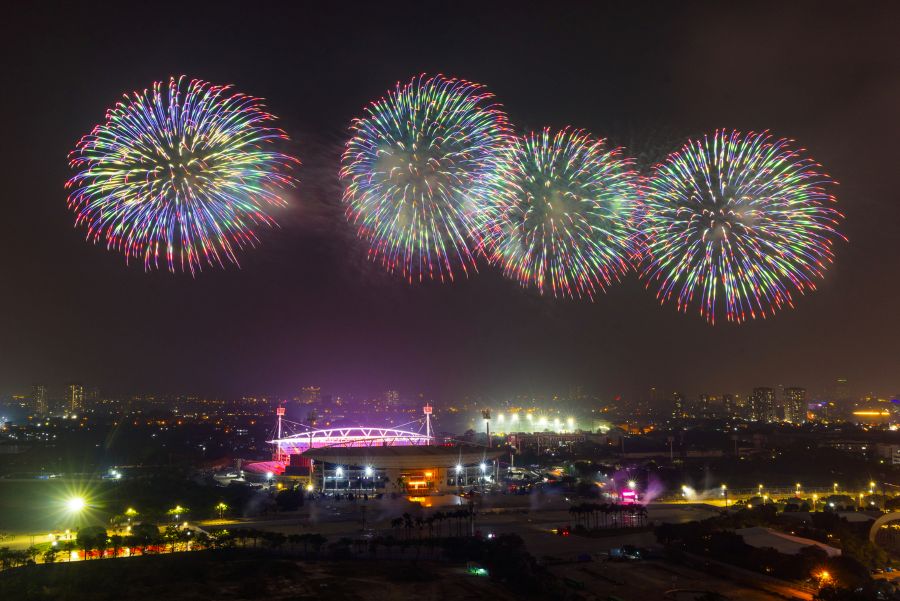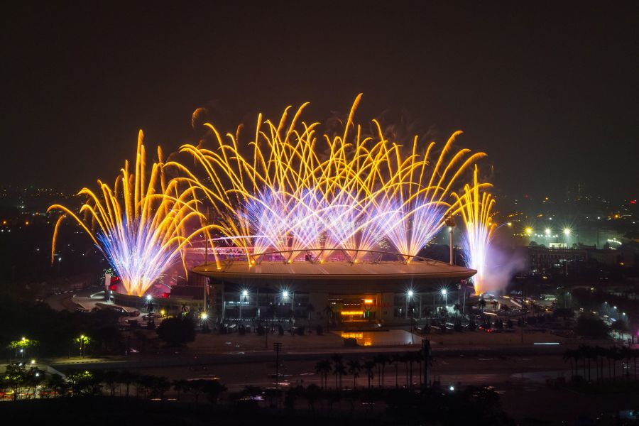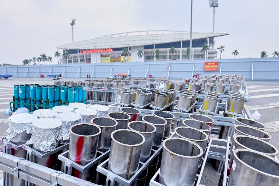 Đặc biệt, bố trí quanh khu vực khán đài B sân vận động là pháo hoa hỏa thuật ống đơn với độ cao ước tính 50 – 90 m, cùng các giàn pháo hỏa thuật loại 1.2 inch độ cao khoảng 50 – 60 m. Tất cả sẽ tạo nên những lớp hiệu ứng ánh sáng liên hoàn, đa tầng, bao phủ toàn bộ không gian trình diễn, tạo nên “bữa tiệc” của âm thanh và ánh sáng.