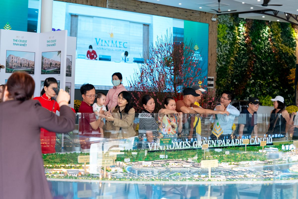 Sáng 14/2, đại lộ trung tâm Vinhomes Green Paradise rộn ràng từ rất sớm. Dòng người đổ về không ngớt, từ các cặp đôi diện đồ xinh check-in Valentine, nhóm bạn trẻ háo hức săn ảnh đẹp, đến những gia đình ba thế hệ tay trong tay dạo hội. Cả không gian như được “bật chế độ” lễ hội cao điểm ngay giữa những ngày đầu xuân.