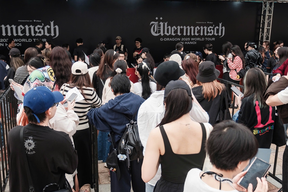 Những nhóm người hâm mộ trong đồng phục fanclub, áo nhóm, banner, lightstick, nón mũ đủ sắc màu tấp nập xếp hàng ngay ngắn từ cổng vào, sảnh trung tâm thương mại cho đến các khu quảng trường, sẵn sàng chờ tới lượt check-in, đổi vòng tay và nhận vé. Dòng người nối dài, không ai muốn bỏ lỡ khoảnh khắc đầu tiên của ngày hội âm nhạc hiếm có.