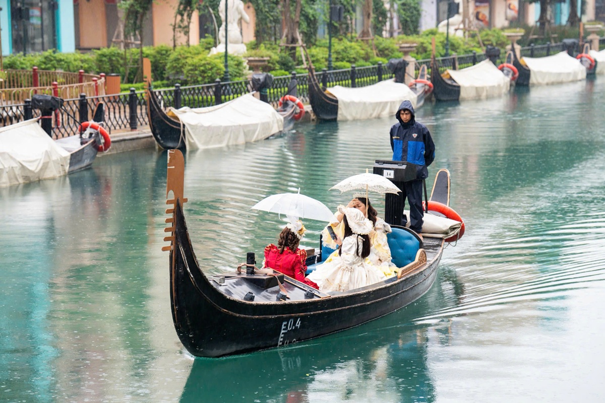 Sau khi hoàn tất thủ tục check-in và nhận vòng tay, rất nhiều fan nhanh chóng khám phá từng ngóc ngách của Ocean City. Một nhóm bạn trẻ hào hứng trải nghiệm chèo thuyền Gondola trên sông Venice, tận hưởng cảm giác trôi giữa làn nước xanh mướt và phông nền các căn nhà mang màu sắc châu Âu cổ kính. Nhiều nhóm khác chọn tạo dáng check-in trên cây cầu lãng mạn bắc qua dòng sông, ghi lại những bức hình phong cách Ý đúng điệu.