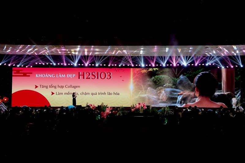 Sân khấu được dàn dựng ấn tượng với các chương hồi dẫn dắt cảm xúc. Điểm nhấn là khoảnh khắc “Mạch nguồn thức giấc”, nơi nghệ thuật múa bóng hòa quyện cùng visual ánh sáng và hệ thống hoa cơ học bung nở đầy kiêu hãnh. Hình ảnh tòa tháp Onsen 3 dần lộ diện từ tâm bông hoa khổng lồ đã tái hiện sinh động sự giao thoa giữa kiến trúc biểu tượng và giá trị wellness chuyên sâu, dẫn dắt gần 1.000 khách mời đắm chìm vào câu chuyện về một chuẩn sống mới, nơi sức khỏe và sự thịnh vượng được tôn vinh.