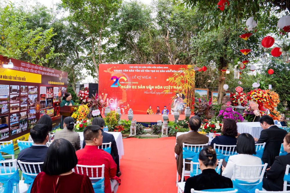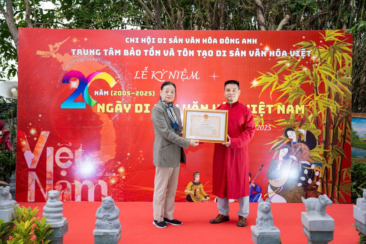 Buổi lễ có sự tham dự của bà Nguyễn Thị Tám – Nguyên Phó Chủ tịch UBND huyện Đông Anh, ông Nguyễn Huy Diến – Nguyên Bí thư Huyện ủy Đông Anh, cùng lãnh đạo các ban, ngành địa phương. Tại sự kiện, TS Nguyễn Thị Tình – Ủy viên Thường vụ Hội Di sản Văn hóa Việt Nam – đánh giá cao tâm huyết và nỗ lực của Trung tâm trong việc gìn giữ, trưng bày và lan tỏa giá trị di sản, trao Bằng khen của Hội và chia sẻ: “Để gìn giữ một không gian di sản quý giá như thế, cần tình yêu sâu sắc và hiểu biết văn hóa – lịch sử. Trung tâm đã trở thành điểm kết nối nghệ nhân, thế hệ trẻ và cộng đồng yêu di sản, góp phần lan tỏa tinh thần văn hóa Việt.”