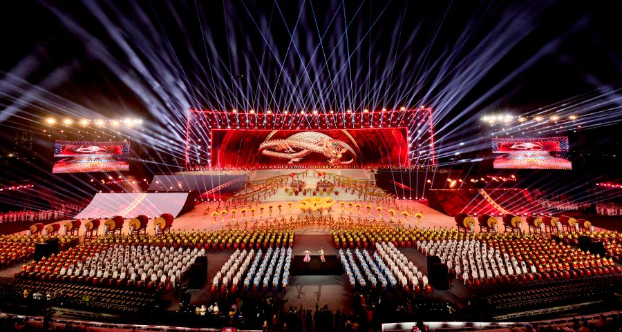 Trong đó, màn trống hội là một trong những tiết mục được dàn dựng công phu nhất, để lại ấn tượng sâu sắc cho khán giả. Với hơn 2.500 diễn viên và hơn 1.000 trống hội các loại, tiết mục đã tạo nên không gian nghệ thuật hùng tráng, vang vọng khí thế non sông. Những hồi trống rền vang, lúc khoan thai, lúc dồn dập, khắc họa sinh động tinh thần quật cường, ý chí kiên trung và truyền thống anh hùng của dân tộc Việt Nam.